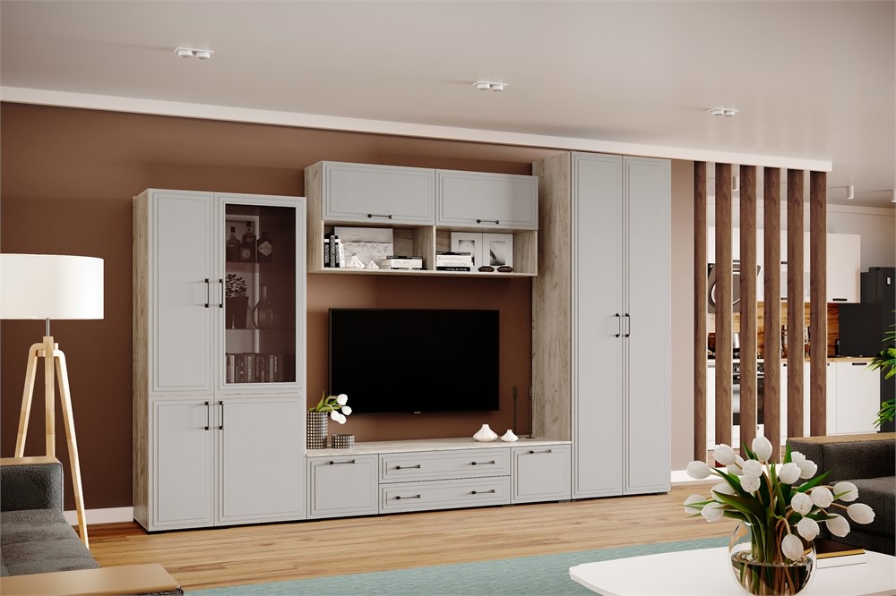- Модульный ряд в "Бруклине" позволяет подобрать шкафы и модули для разных помещений с шагом до 2 см.